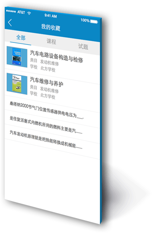 • 汽修課堂不僅可以自手機端進行課程學習,其APP還支持在線考試,在家里、坐地鐵,甚至是在餐廳等,都可以隨時拿起手機“考試”。