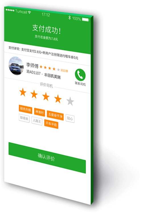 9支付完成,對行程司機服務進行評價